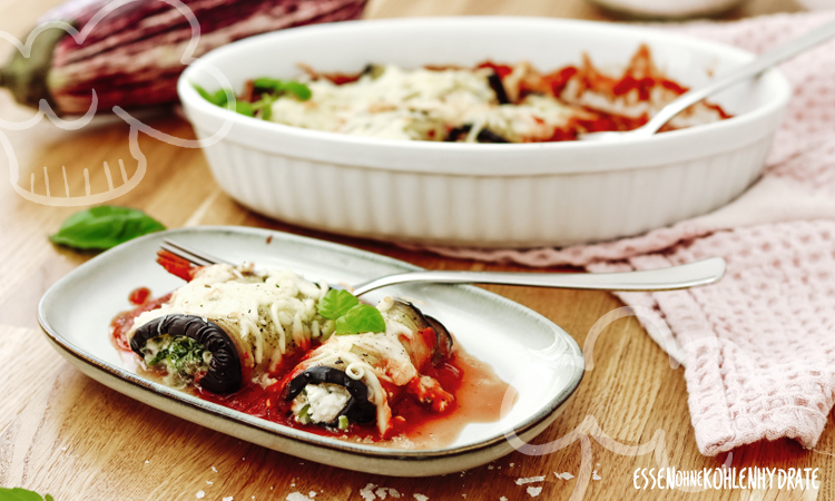 Ein tolles, vegetarisches Ofengericht für die Mittagspause oder den Feierabend. Cannelloni aus Auberginen mit Frischkäse-Spinat-Füllung. Einfach zubereitet und sehr lecker! Perfekt für jeden Tag.