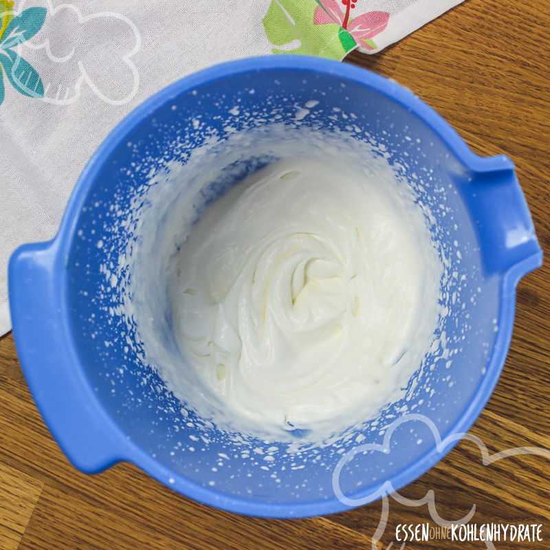 Anschließend erst die Sahne unterrühren und dann den Eischnee unterheben. In Schälchen füllen und für mindestens 2 Stunden im Kühlschrank kalt stellen.