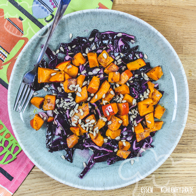 Ein leckerer Salat aus Rotkohl und Kürbis für die Herbst- und Winterzeit. Sättigend und gesund! Perfekt für das nächste Mittag- oder Abendessen.